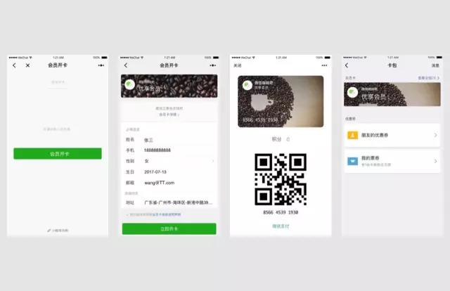 為提升微信會員卡商家在小程序內的開卡效率,幫助用戶注冊會員時快速填入信息,小程序和微信卡包提供了小程序開卡組件的能力,供開發者使用。 在會員開卡場景下,開發者可以使用開卡組件幫助用戶完成快速開卡、自動將會員卡添加至卡包的動作。 用戶進入開卡組件后,曾經使用微信會員卡填寫過的姓名、手機號、生日等多項資料會被自動預填,用戶僅需簡單確認即可提交會員注冊信息。 用戶提交信息后,會在卡包內收到一張微信會員卡,可用于出示、查詢等用途。