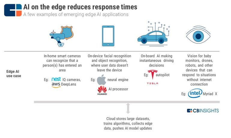 例如,nest 智能相機和 AWS DeepLens 這樣的家用智能像機可以識別出有人進入了特定的區域 ;Apple 神經引擎和華為 AI 將其運用于處理器設備上的面部識別和對象識別,這樣用戶數據不會離開設備;特斯拉自動駕駛讓車載 AI 即時做出駕駛決策;英特爾 Myriad X 可以讓嬰兒監視器、無人機、機器人和其他設備的視野可以在沒有網絡連接的情況下應對情況。