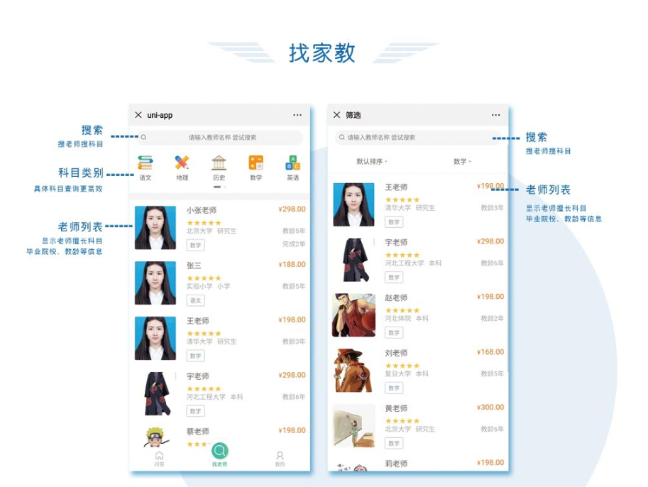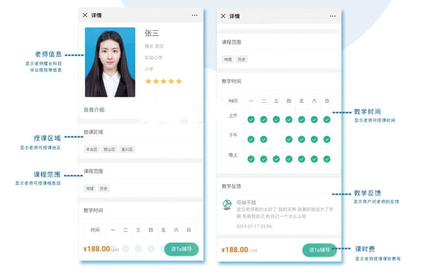 特色功能: 1. 連接家長、學生、老師 2. 積分兌換優惠券 3. 一鍵搜索名師 4. 一鍵直達所需輔導課程 5. 支持一對一文化課補習輔導 6. 支持興趣班輔導